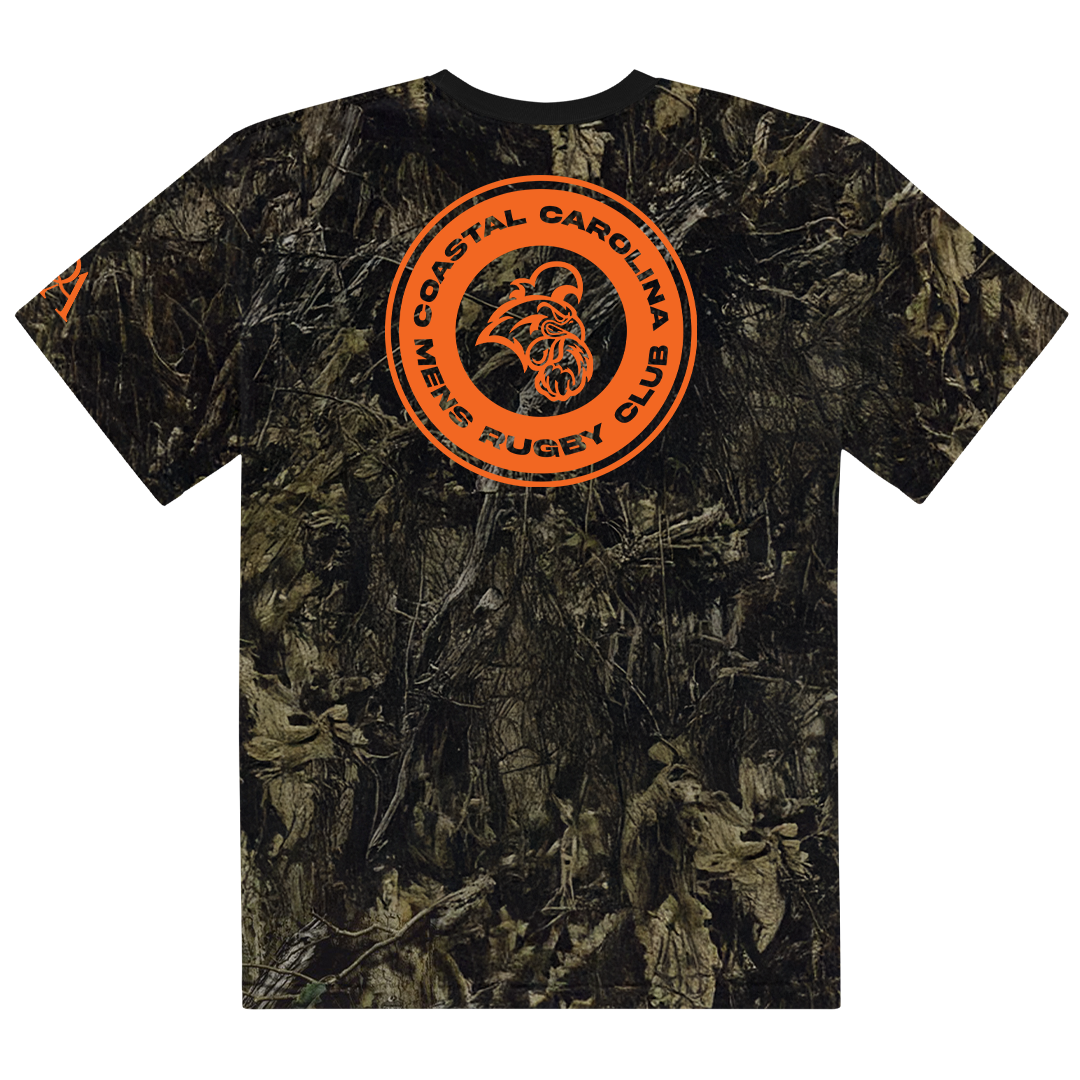 Rep Coastal Carolina Men’s Rugby Club in comfort and style with this camo cotton tee. Made from soft, 100% cotton with a classic fit and tonal camouflage print, it’s finished with high-contrast orange team logos and reinforced stitching for everyday wear—perfect for match day, the tailgate, or straight-up street style.