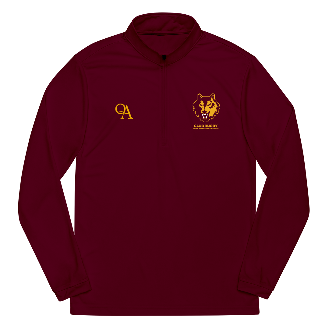 Loyola Chicago Rugby Club Quarter-Zip — classic club style with modern performance. This lightweight quarter-zip combines a clean silhouette with athletic tailoring, a zip guard, and subtle detailing for on or off-pitch warmth and mobility.