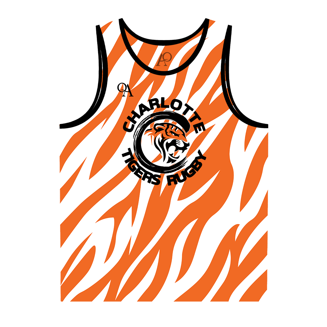 Dominate the ruck in the Charlotte Tigers Rugby Club singlet. Featuring an eye-catching tiger-striped background framed by contrast black piping, this athletic-cut singlet is built for freedom of movement and all-day comfort. Available in breathable performance polyester.